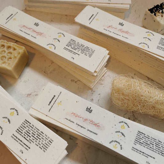 Welcome to our Artisan Packaging Essentials page, where we showcase sustainable solutions crafted from seed and cotton papers. Our collection features dust covers for candles, jewelry packaging, and soap wraps, but we are always looking to add new products! Elevate your brand with packaging that not only looks beautiful but also reflects your commitment to sustainability.