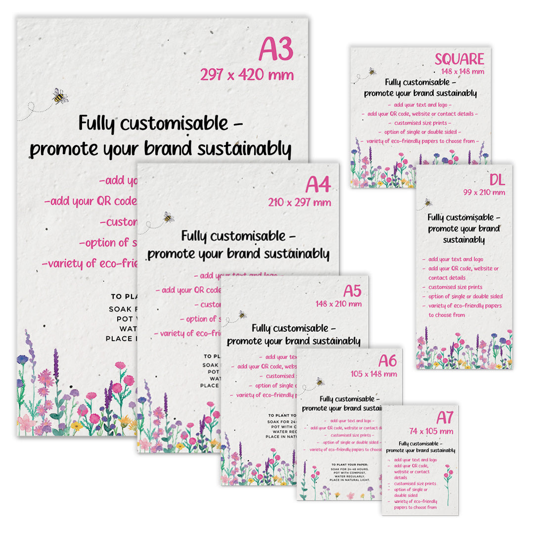 Revolutionise your marketing approach with our seed paper flyers and custom prints! These environmentally friendly prints are plantable and biodegradable, promoting your brand and sustainability. Create a lasting impact on your customers, and the planet with every print.