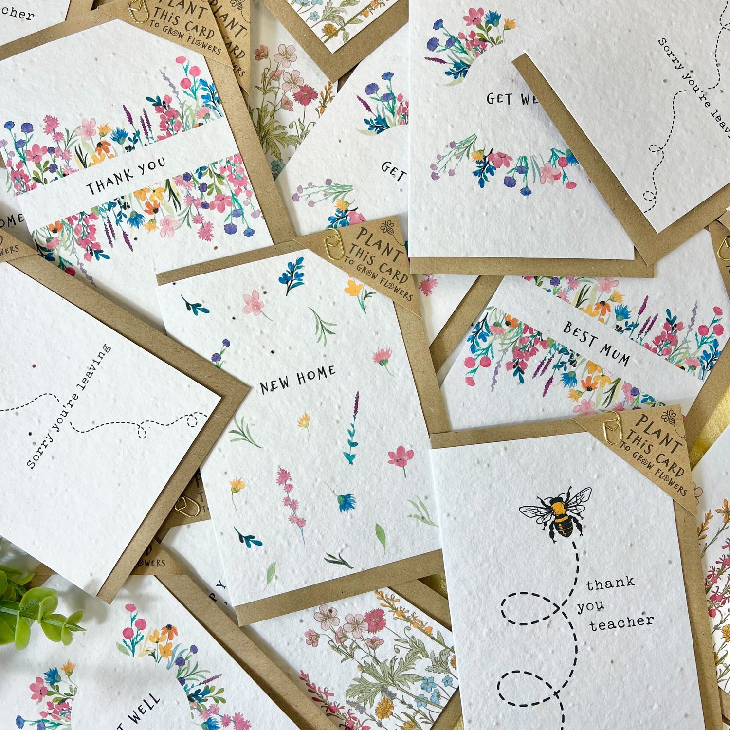 The majority of our cards are crafted from plantable seed paper made with cotton waste from the textile industry, but we also offer a selection of cards made from elephant poo paper.