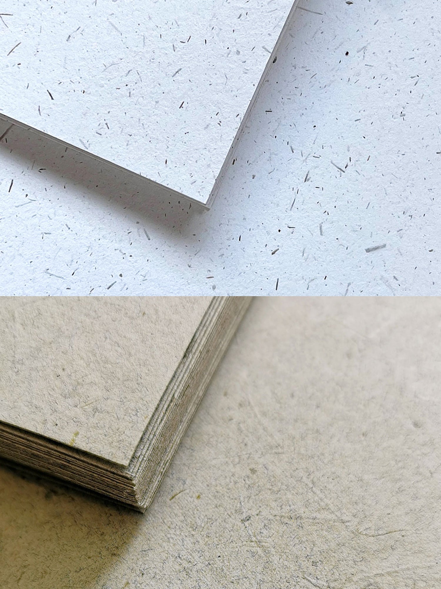 Our plantable seed paper is a handmade paper product made from recycled cotton waste sourced from the textile industry. This eco-friendly paper contains seeds embedded within its fibers, allowing it to be planted in soil after use. As the paper decomposes, the seeds germinate and grow into plants, resulting in a beautiful and environmentally friendly way to repurpose waste materials.
