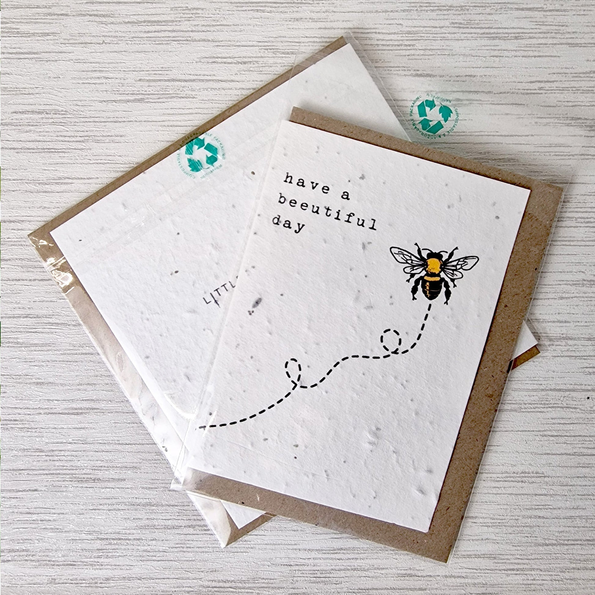 When printing on Seed Paper there is a lot to consider. We recommend using low ink designs and avoiding block colours or photographs (may incur additional costs). Whilst these do print they are not the best use of the board for many reasons. Firstly, seed paper's best quality is the visual nature and large ink blocks hide this. Secondly, the ink has a negative impact upon the germination process. Finally, due to the uneveness in air dried papers it may not give the best finish.