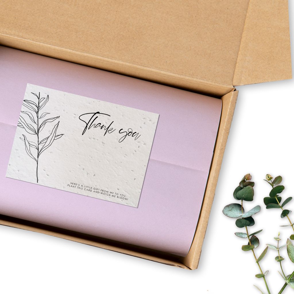 Send a thankyou to show your appreciation for supporting your business with our compliment slips in our Leaves - Thankyou design, printed on one of our eco-friendly papers and help promote sustainability.