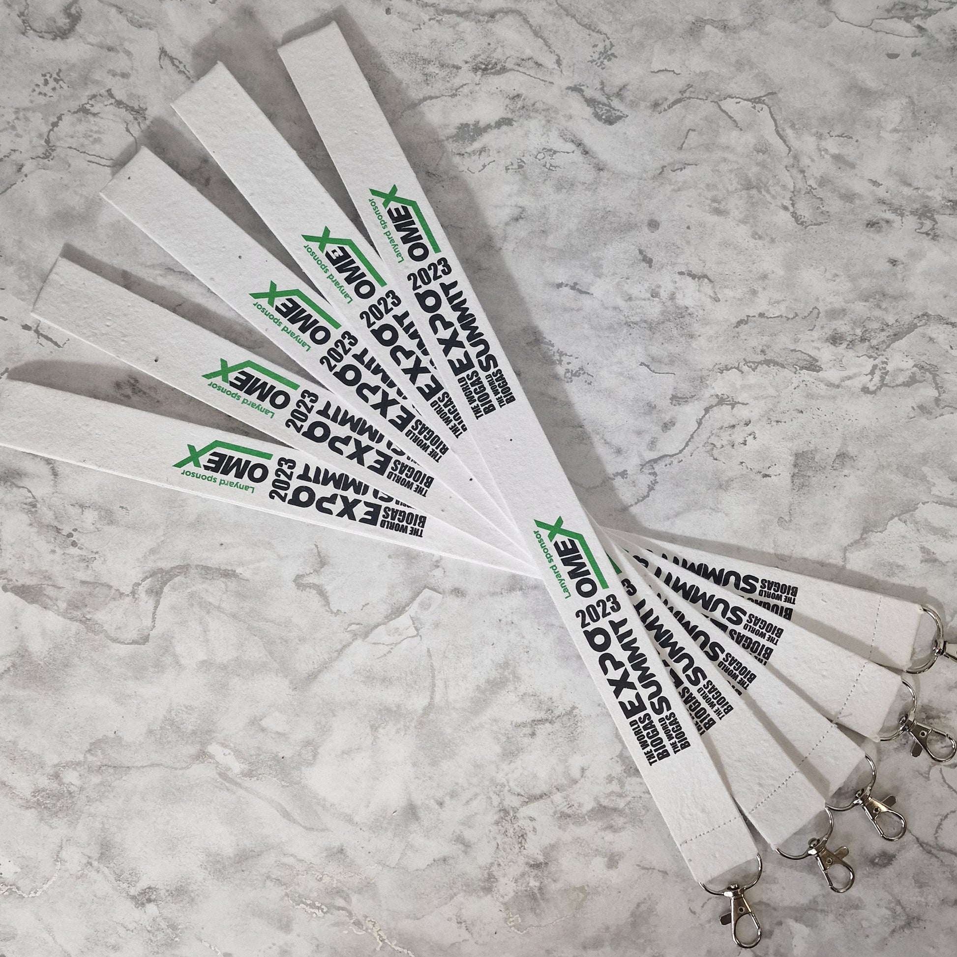 Make your next corporate event as eco-friendly as possible by using our seed paper lanyards. This option comes printed with your logo, made from our bloom wildflower seed paper and finished off with a metal clip to hold an ID tag. They also act as a giveaway when attendees take them home to grow flowers.