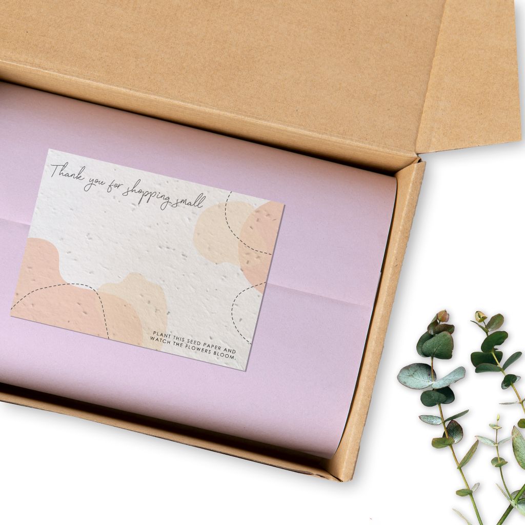 Send a thankyou to show your appreciation for supporting your business with our compliment slips in our Thankyou For Shopping Small design, printed on one of our eco-friendly papers and help promote sustainability.