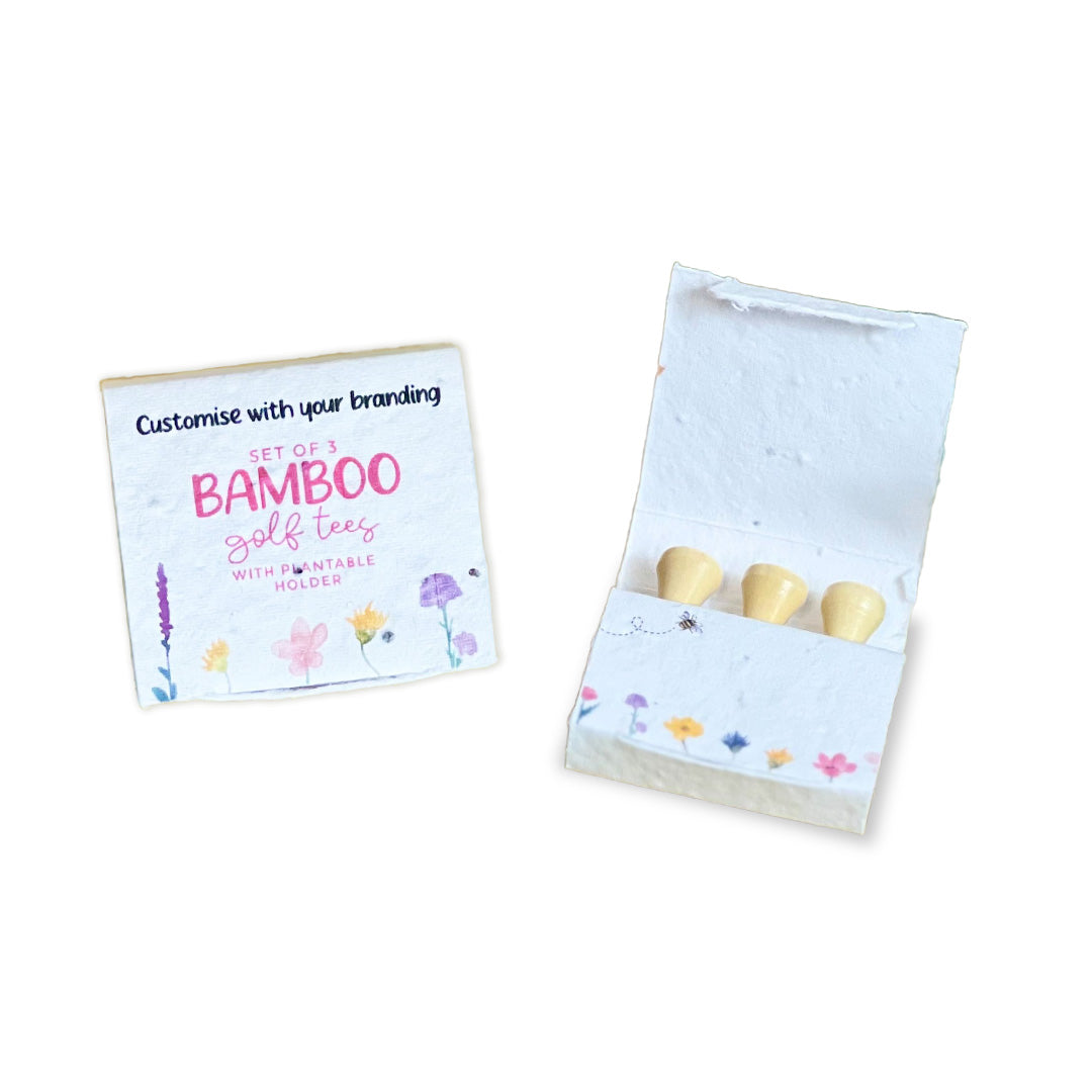 These super popular eco-friendly bamboo golf tees are now available as a mini set to customise with your branding! These uniquely customisable products combine 3 eco-friendly bamboo golf tees and our luxurious plantable seed paper to create an effective and cost-efficient marketing tool. Plant the seed paper packaging after use!