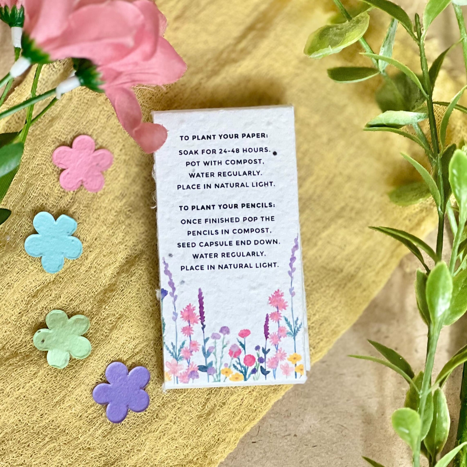 While our seed paper is made with high-quality materials and contains viable seeds, we cannot guarantee successful growth. Germination and plant development depend on several factors beyond our control, such as planting conditions, climate, and care. Please follow the planting instructions on the section above for the best results.